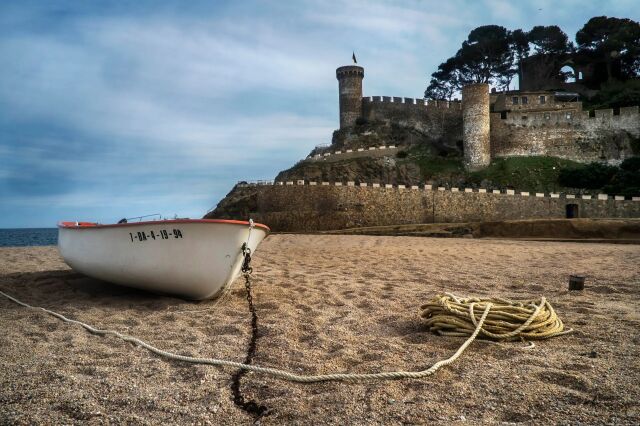 Circulamos en paralelo a la costa hasta nuestra siguiente parada, Tossa de Mar, dejando al norte el macizo de Les Gavarres, de cuyos bosques de encinas y alcornoques sale una importante producción de tapones de corcho. Tomamos el primer café del día con vistas a la muralla de Tossa de Mar. Por el barrio de pescadores de Sa Roqueta llegamos hasta el Portal, el acceso a la Vila Vella donde hemos quedado para empezar una visita guiada que incluye la entrada al Museo Municipal para ver una obra de Marc Chagall. Tras el paseo por la parte más antigua de esta localidad fortificada, decidimos seguir el tramo del Camino de Ronda que va hasta cala Giverola para asomarnos al mirador de Sant Jaume, un balcón con espectaculares vistas de los acantilados y de la población con su castillo.